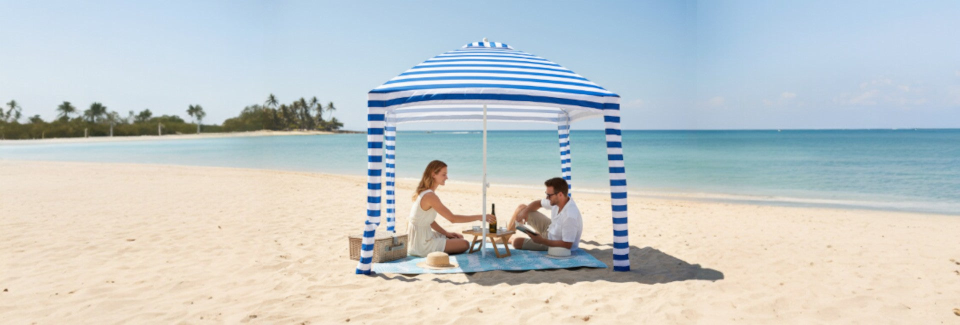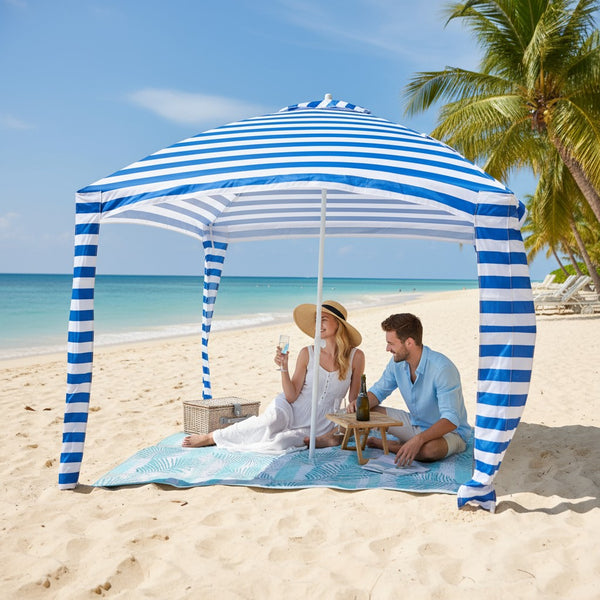You can attach a cabana or sun umbrella to our picnic blankets, thanks to the sunshade-ready center hole. Enjoy all-day shade without worrying about setup.