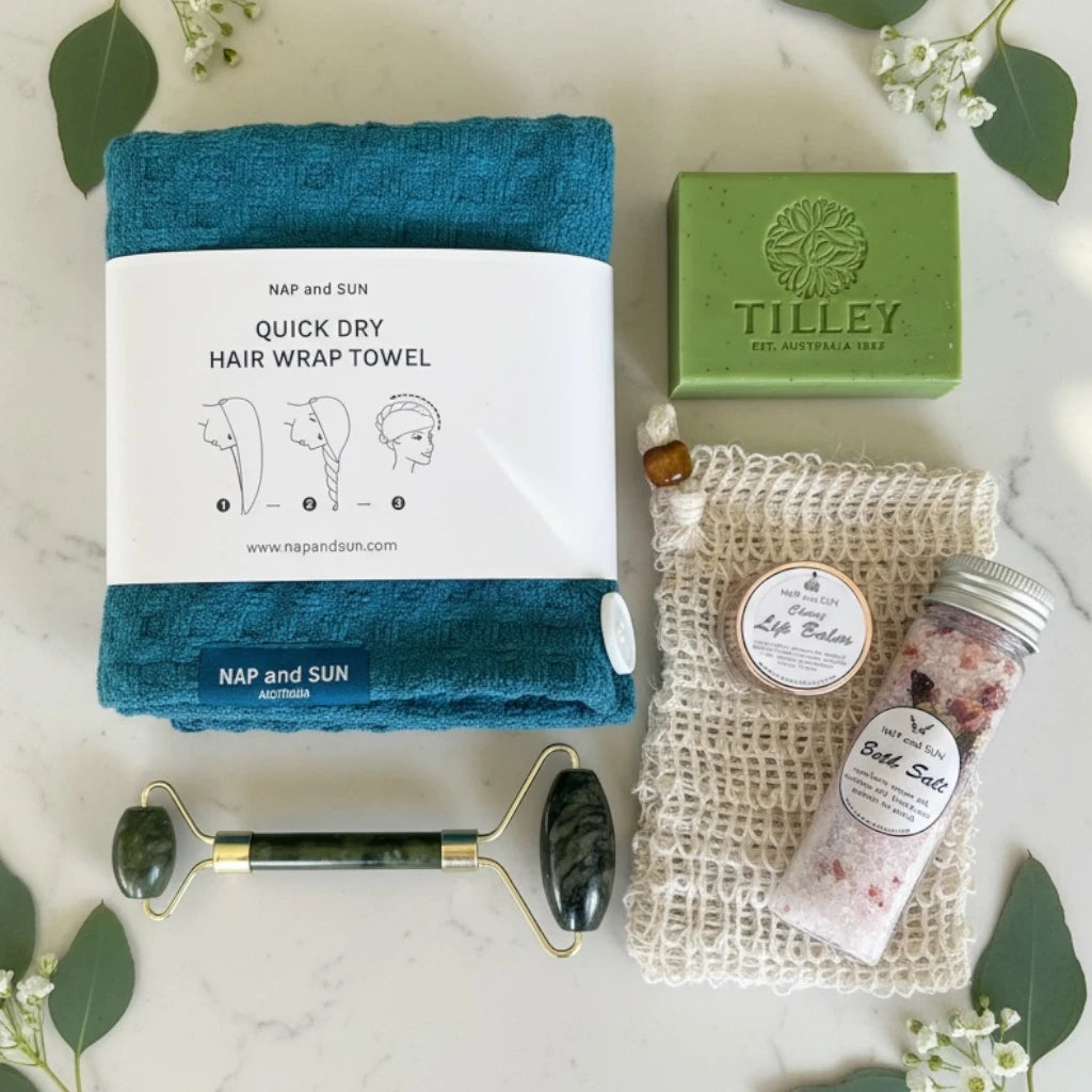 From the soothing bath salts to the face massager, every item is chosen to create a little ritual of calm.